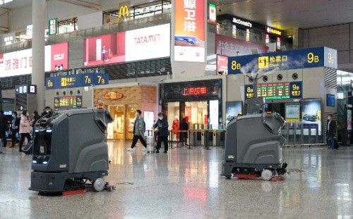卡赫AI智能清洁机器人在上海虹桥站进行消杀工作