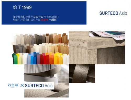 云生活板材自2017年专注饰面研发,国内最早的皮纹,tugo等流行花色都是云生活板材研发定制,此次携手苏德克SURTECO将引进纯进口饰面,打造更真实等板材产品,适应当下对高端家居的需求。