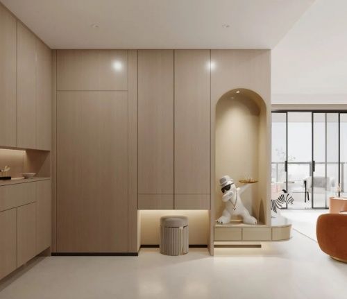柔和的纤素意木和简洁白色的墙面完美契合,处处流露出浪漫与时尚的气息,纤素意木纹理悠远,诠释着自然的纯粹和温暖的回归。
