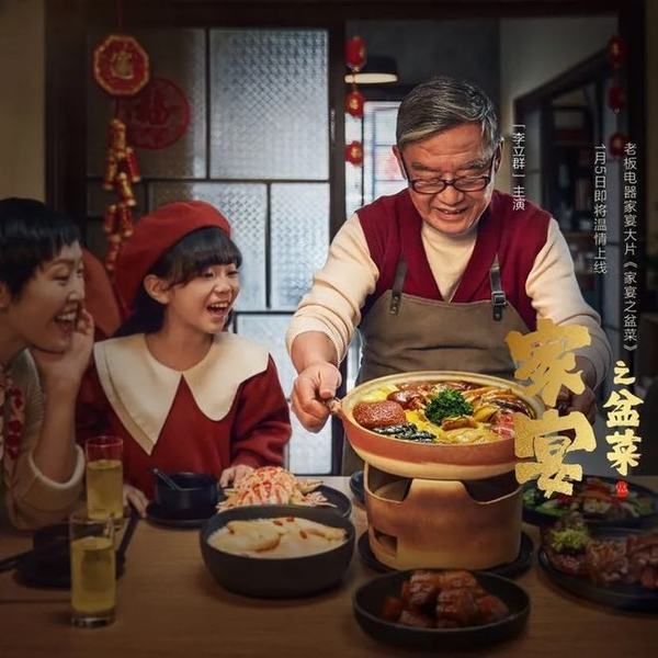 相比之下,老板电器更具玩味、食趣,更加追求烹饪的意义,从2019年开始老板电器就抓住春节这一特殊节点,打造春节家宴重磅IP,从《婆婆妈妈的菜》,到《锅来了》,《有故事的菜》,再到《家宴之盆菜》......通过别具一格的方式表现关于“爱”的冲突,赋予了冰冷的科技感厨电家常的温度。