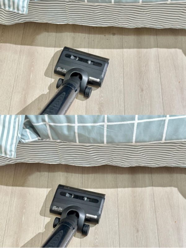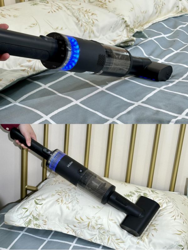 其实作为一台洗地机在清洁力和便捷度上它已经是不错的选择了,更令人满意的是它还能魔法变身,电机取下接上吸尘器吸头就能成为吸尘器,平时吸吸灰尘毛发,清洁地毯都是很实用的。换上组合吸头就能变随手吸,像沙发缝隙、柜子灰尘、空调出风口、汽车内饰都是指哪吸哪。最值得一提的是这个180°紫外线除螨刷,有一根长长的uvc灯管可以穿透纤维直达织物深层,配合强力拍打震荡,拔出附着的螨虫、皮屑和灰尘,除螨率高达99.9%,清洁效果也是肉眼可见的好。这样一来一台洗地机就能把各处的细节难题都随手解决了。