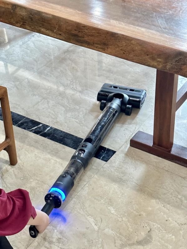 另外,买的时候还特意看了一下机器的重量,就我用过那么多款洗地机而言自身太笨重的话就算有前驱助力用起来手臂还是会感觉有负担的。这台洗地机整机重量3.8kg,是比较有优势的,配合牵引力能带着人往前走,对女性也比较友好。还有一些大家都比较关注的续航问题,这次海尔魔方洗地机采用了接力棒式可拆卸电池,平时不太需要精细化清洁的时候一块电池就能打扫100平,做大扫除的话随手更换电池就能持久续航45分钟。不仅能保证使用需求,还能更好的延长机器的使用寿命。