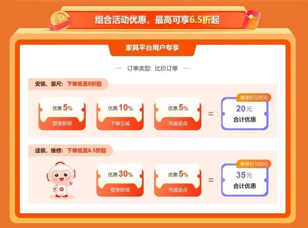 也就是说,只要你下家具订单,优惠都是大大的有。