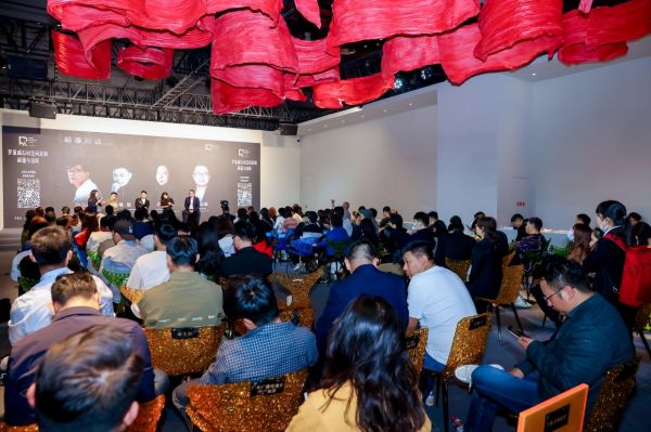 发布会现场,探岩集团董事长、广州罗意威全案建材有限公司董事长李欣慰、广州罗意威全案建材有限公司总经理邹月月与中国建筑装饰协会设计分会副会长孙少川、覃思;上海UD studio创始人李诚默围绕石材在未来空间设计中的应用趋势、石材行业即将迎来的工业变革等主题进行交流对话,和到场的150余位优秀的设计师共同探索石材新美学。