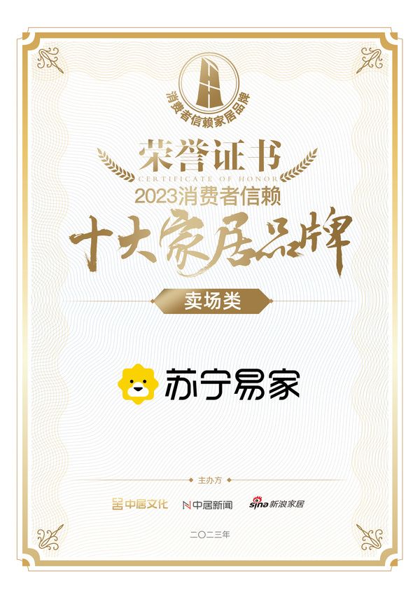 喜报!苏宁易家荣获卖场类「2023消费者信赖十大家居品牌」
