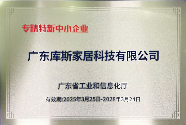 库斯家居先后荣获 “国家级高新技术企业” 认定、“佛山市专精特新企业”。