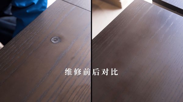视频中陈师傅接到的订单是修复被烟头烫出“疤”的实木床头柜,桌面上指腹大小的圆形伤口异常突兀。
