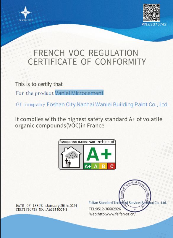 A:万磊通过德国AGBB认证,VOC含量23g/L,甲醛释放<6mg/kg,符合国际环保标准。并且也一并通过了欧盟CE与法国A+环保认证。
