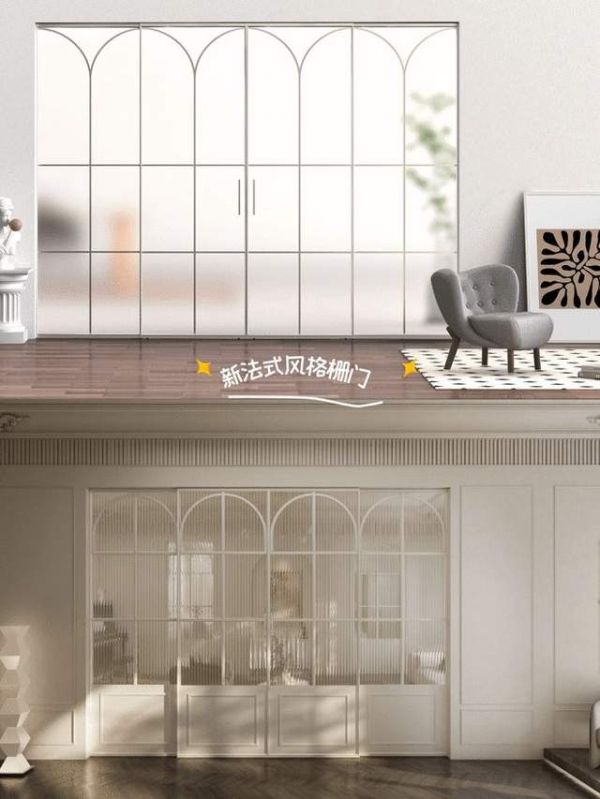法式风格适合纤细金/银色型材+弧形格栅,搭配夹丝玻璃,浪漫慵懒的氛围感与生俱来;