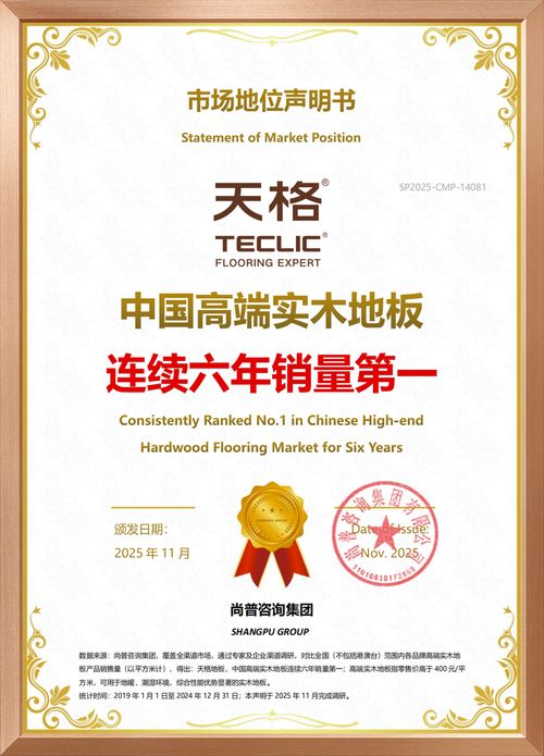 34年来,天格始终专注于实木地板领域,致力于为消费者提供可靠的高端地材,因此得到了广大用户的选择与信赖。“中国高端实木地板连续六年销量第一”的市场地位认证,就是消费者对天格中国高端实木地板的最高褒奖和肯定。
