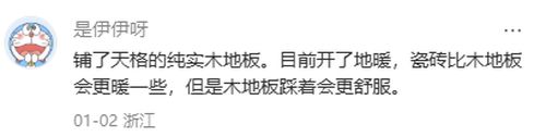 @浙江·是伊伊呀:“铺了天格的纯实木地板。目前开了地暖,瓷砖比木地板会更暖一些,但是木地板踩着会更舒服。”