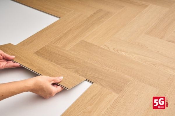 全新的5G H/B One技术基于Valinge威林格知名的5G直落式锁扣技术开发的智能单板技术,这项技术将市场领先的锁扣系统的强度与可靠性应用于地板人字拼铺装,并且不需要A/B两种面板,从生产到最终安装的每个环节都得以简化。