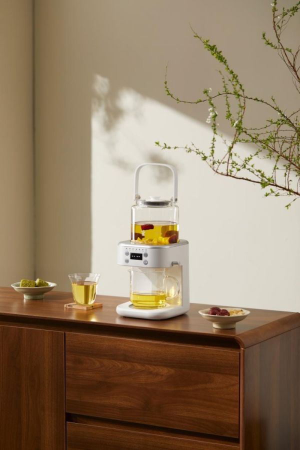 更值得一提的是,可蒸茶可煮茶,内置六种模式(含洗茶模式),实现一茶一温,不同茶种对应专属喷淋时间,花茶、原叶茶均可一壶满足。蒸茶模式专攻老茶、黑茶、乌龙茶,避开直接水煮的苦涩,充分激发茶叶香醇滋味;熬煮模式取下茶漏即可一键切换,一秒变身养生壶,适宜四季熬煮养生食材,默认慢火熬煮半小时,还可根据食材和口味调整时间,随按随停。全功率加热煮沸后,自动切换变频慢煮,既能有效防止沸腾溢出,又能以温和火力守住食材本味,避免久煮失香,不用守在旁边看管,办公间隙、居家休息,按下按键就能忙自己的事,到点就能喝到温厚好茶。