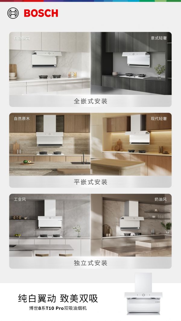 博世家电作为欧洲领先的家电制造商博西家电旗下知名品牌,以 “恒久品质,致用朝夕” 为全新的品牌宣言,凭借卓越品质、精湛工艺与持续创新,为全球家庭打造轻松健康的家居生活。自进入中国市场以来,博世家电深耕本土需求,不断推出契合中国家庭的高品质产品。此次 博世8 系 T10 Pro 双吸油烟机上市,将德式精工与中国厨房需求完美融合,为消费者带来更优雅、高效、舒适的烹饪体验。未来,博世家电将继续以创新科技赋能家居生活,助力更多家庭实现品质理想生活。