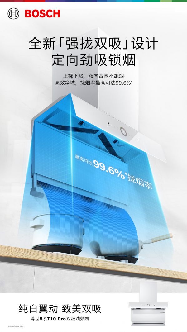 随着现代家居一体化、美学化趋势深入,厨房已成为家庭品质生活的核心场景。中式烹饪爆炒油烟大、传统烟机颜值与家装不匹配、高层排烟阻力大、清洁维护繁琐、运行噪音扰人等痛点,一直困扰着众多消费者。博世家电精准洞察市场需求,全新推出博世 8 系 T10 Pro 双吸油烟机,以优雅外观、硬核净烟科技与人性化实用设计,全面升级厨房体验,重塑高端厨电新标准。