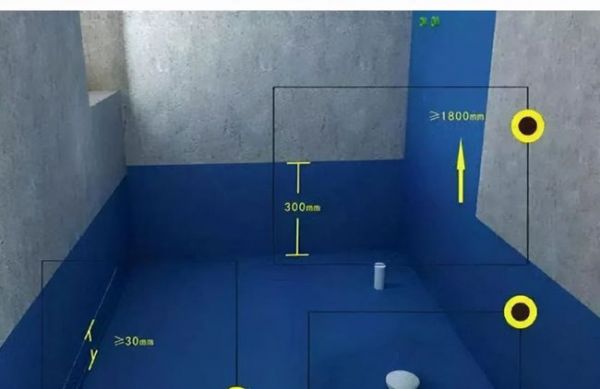 淋浴区:1.8m高,洗漱台、马桶周边高出器具20~30cm,其它墙面20~30cm即可。