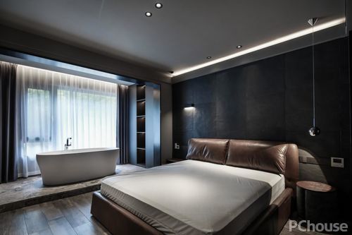 阳光是最好的滤镜,中和着主卧的温度。把浴缸安在阳台,在冬日的午后,慵懒的阳光洒满阳台,憧憬的太阳浴立刻实现,看水蒸气和光影交织,抑或在盛夏的傍晚,点上迷人的熏香,也不乏舒适惬意。半高的阳台,很好得保护了主人的隐私,也不妨碍主人透过窗户欣赏户外的景色。